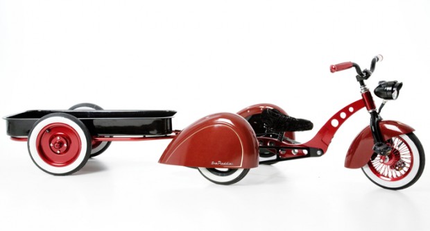 Bicicletas legais: conheça a Enzo Trike, bicicleta infantil estilo retrô. O triciclo vem com um carrinho no engate. A criação é da kidkustoms, especializada em produtos infantis sobre roda.